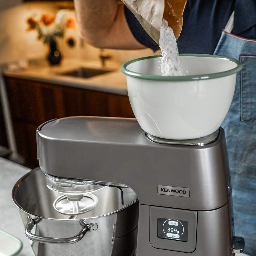 Køkkenmaskinen kombinerer både indbygget varmeplade og vægt, så bageprocessen bliver mere enkel og præcis. Varmepladen kan bruges til at smelte smør eller chokolade samt til at holde dejen ved den ønskede temperatur. Den indbyggede vægt gør det muligt at veje ingredienser direkte i skålen – hurtigt og bekvemt.