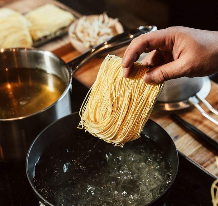 Start simpelt og øg gradvist sværhedsgraden – det er mit bedste råd. En nudelskål består typisk af flere elementer: bouillon, nudler, topping og smagsgivere. Begynd med at mestre en god bouillon og køb resten færdigt. Når det sidder i skabet, kan du begynde at lære en ny komponent – og før du ved af det, eksperimenterer du med dine egne kombinationer og bliver en ægte nudelnørd!