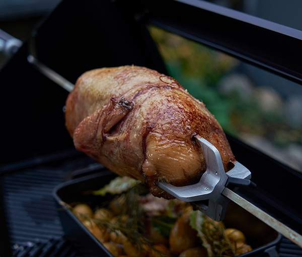 Med Everdures nye rotisserisystem kan du nu nyde helgrillet kylling eller en saftig steg. Den drejer langsomt.