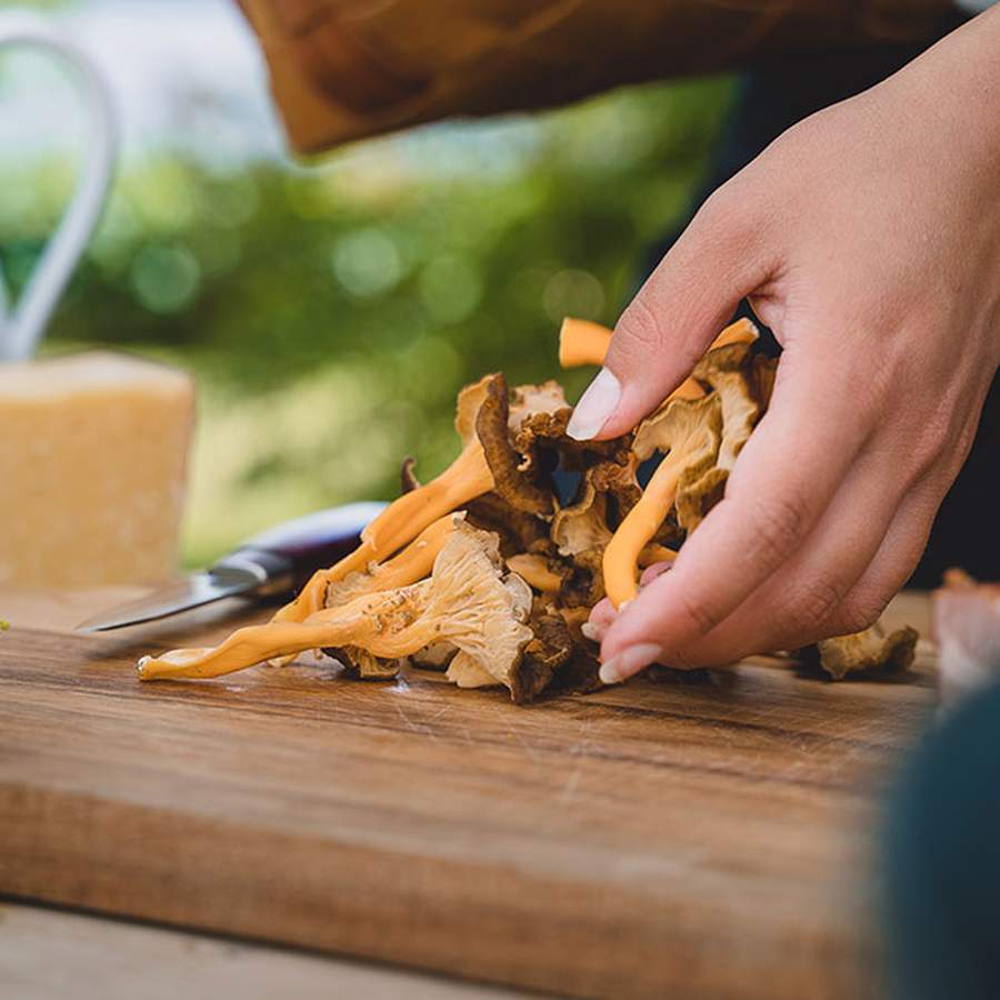 5. Rens svampene med en børste og kniv direkte i skoven, før de ender i kurven. Så er det nemmere, når du kommer hjem.