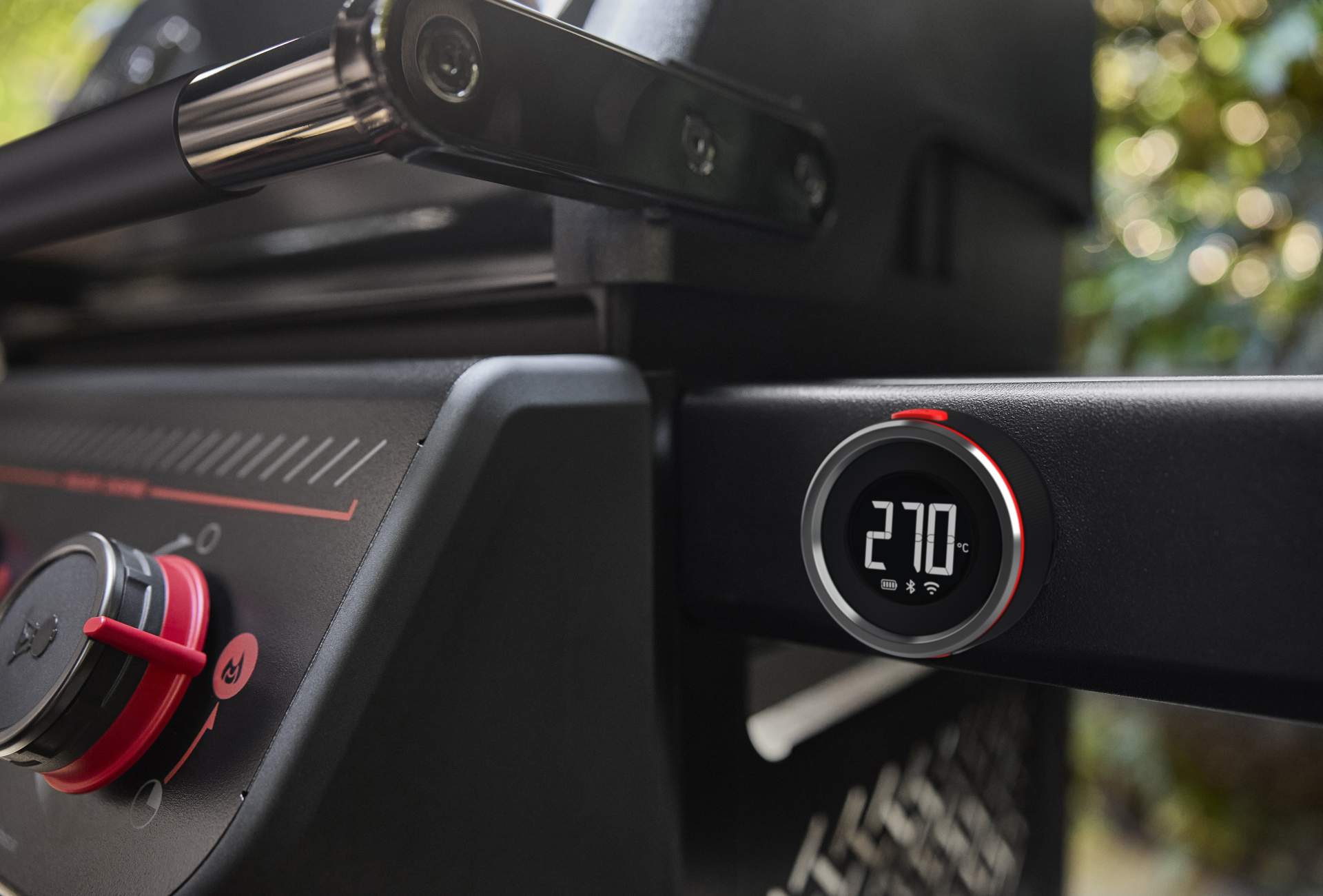 Spirit-grillen imponerer ikke kun med sin matte sorte finish og elegante røde detaljer, den er også udstyret med smart teknik, der hjælper dig med at opnå perfekte resultater hver gang.