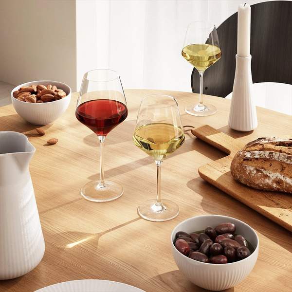 Glasset:Et vinglas med en stor, høj skål og relativt lille åbning anbefales. Formen forstærker friskheden i druen og intensiteten i duften. Desuden giver det vinen en god balance mellem frugt, syre og mineralitet.