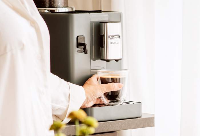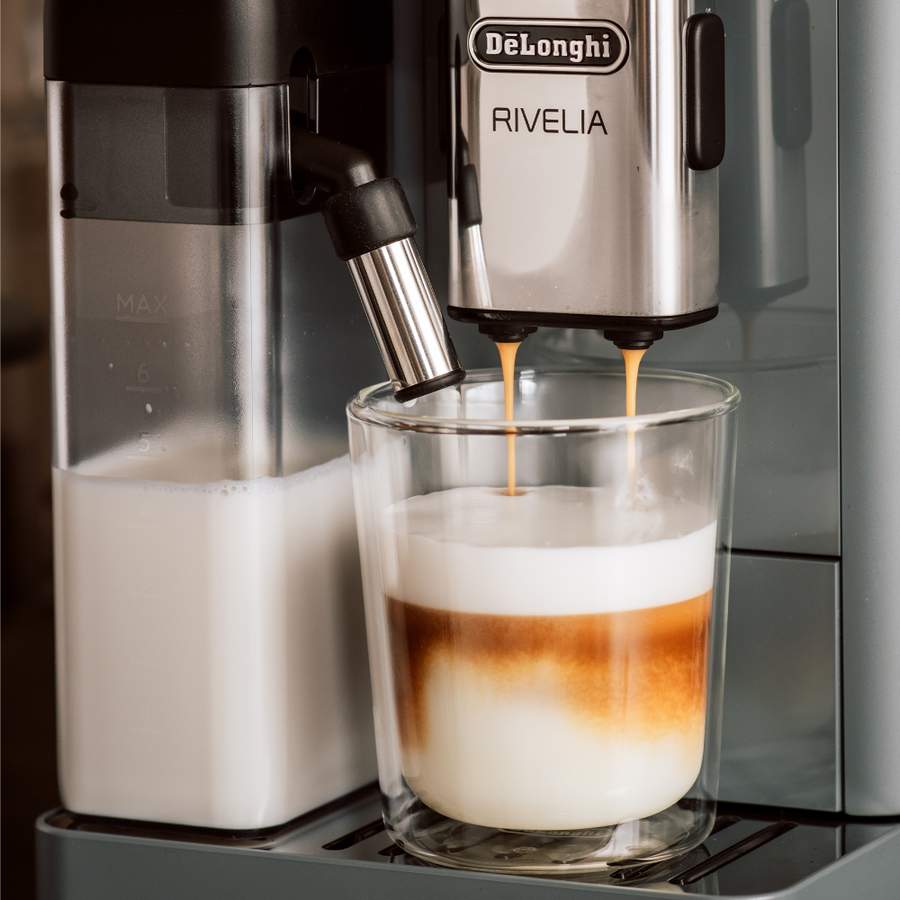 Rivelia er udstyret med Bean Adapt-teknologi, som automatisk tilpasser malingsgrad, dosering og bryggetemperatur efter netop dine kaffebønner, så hver kop bliver brygget optimalt. Og med LatteCrema Hot får du silkeblødt, varmt mikroskum til dine mælkebaserede drikke – med automatisk rengøring for maksimal komfort.