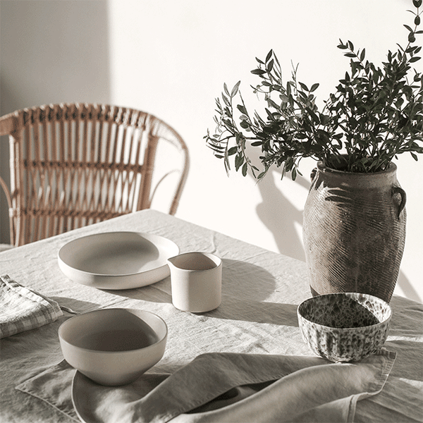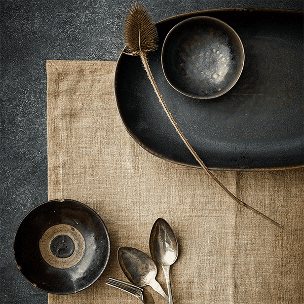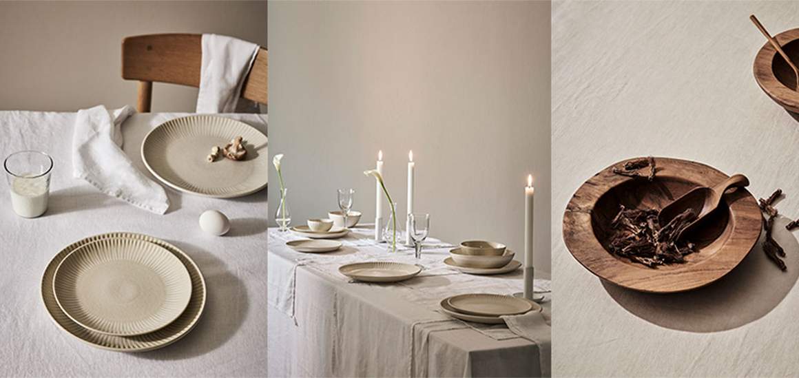 Opdag deres samling af mundblæste glas, køkstextiler i blødt, stentvasket hør og stentøj i form af tallerkener og skåle.